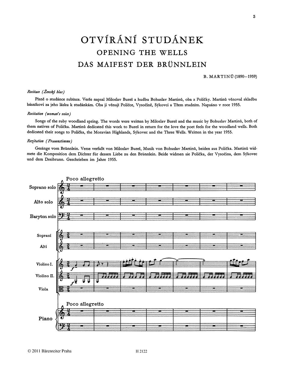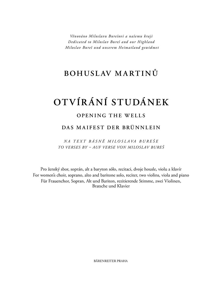 Starý lidový zvyk vítání jara a symbolické čarování nad lesními prameny, čištění studánek a otevření cesty novému životu, to je námět Martinů komorní kantáty pro ženský sbor, sóla a recitaci s doprovodem dvou houslí, violy a klavíru. Otvírání sudánek je první z cyklu čtyř kantát na texty básníka Miloslava Bureše opěvujících rodnou Vysočinu.