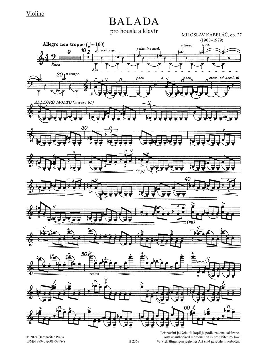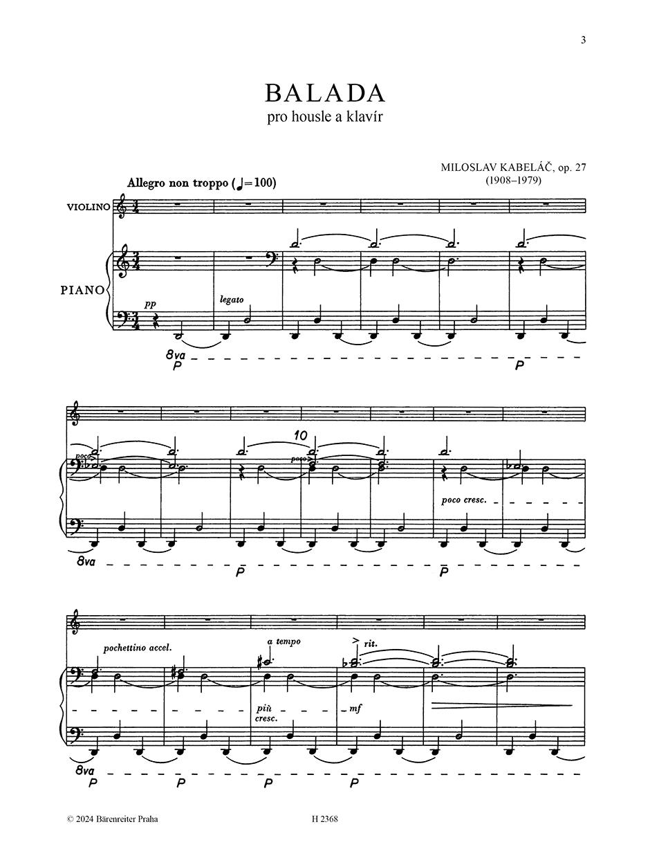 V tvorbě Miloslava Kabeláče (1908–1979), jedné z nejvýraznějších skladatelských osobností české hudby 20. století, převažují díla orchestrální, ale i skupina jeho komorních skladeb je velmi obsáhlá a různorodá a řada z nich si získala u interpretů i posluchačů nemalou oblibu. Patří mezi ně i působivá jednovětá Balada (Ballata) pro housle a klavír op. 27 z roku 1955.