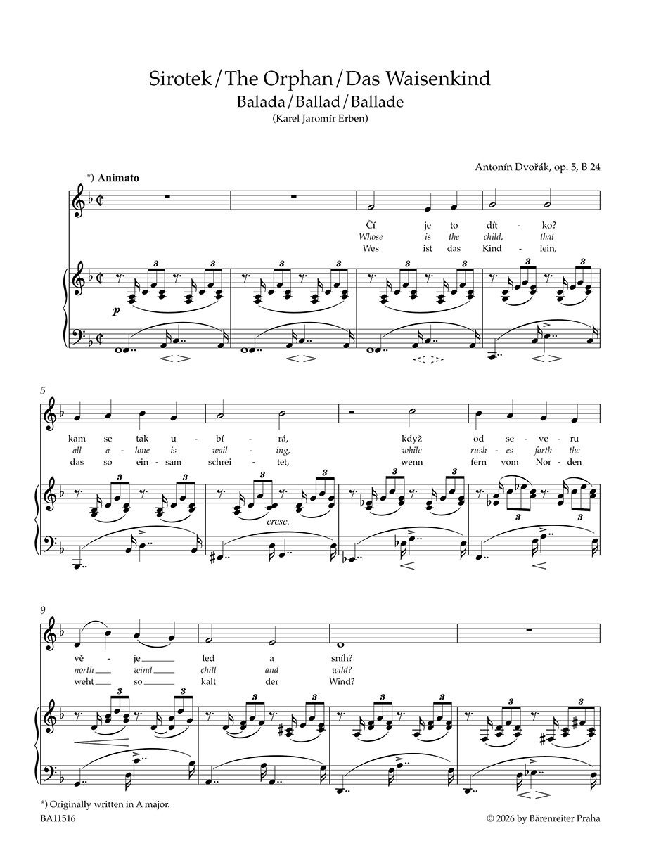 - první urtextové vydání písní pro sólový hlas a klavír z Dvořákova raného tvůrčího období