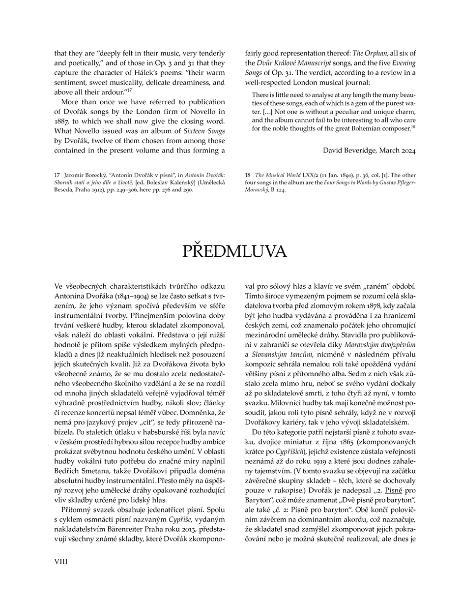 - podrobná trojjazyčná předmluva (a/č/n) ke genezi jednotlivých písní od předního dvořákologa Davida R. Beveridge a kritická zpráva (anglicky) od editora
