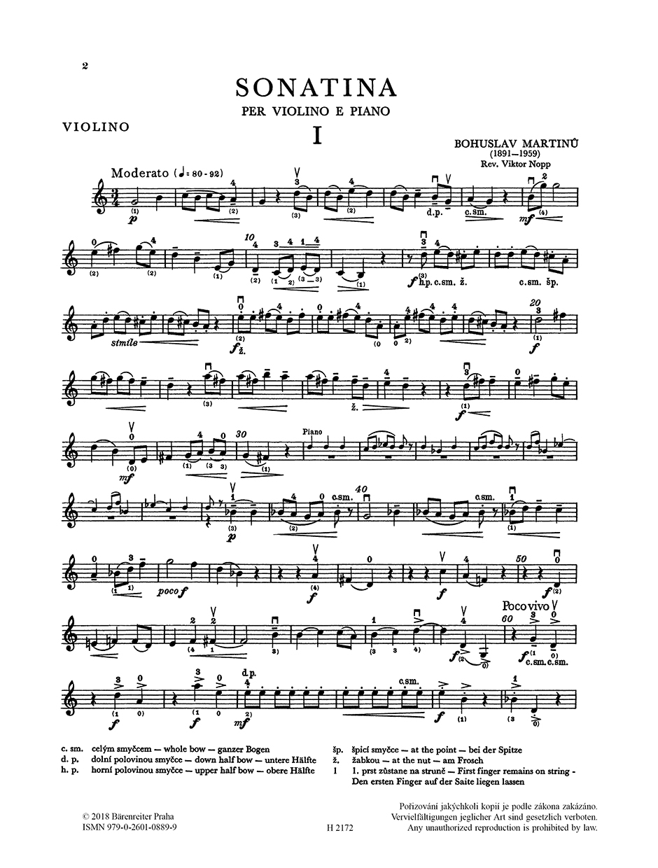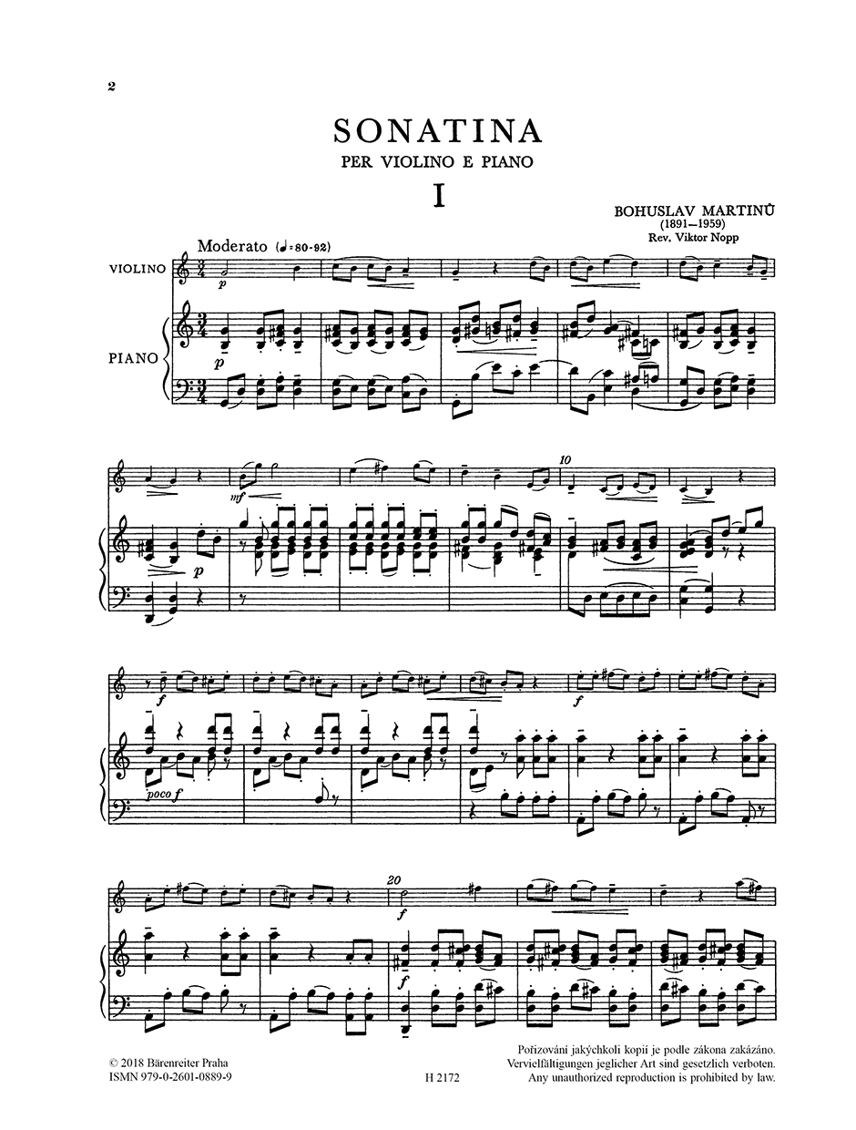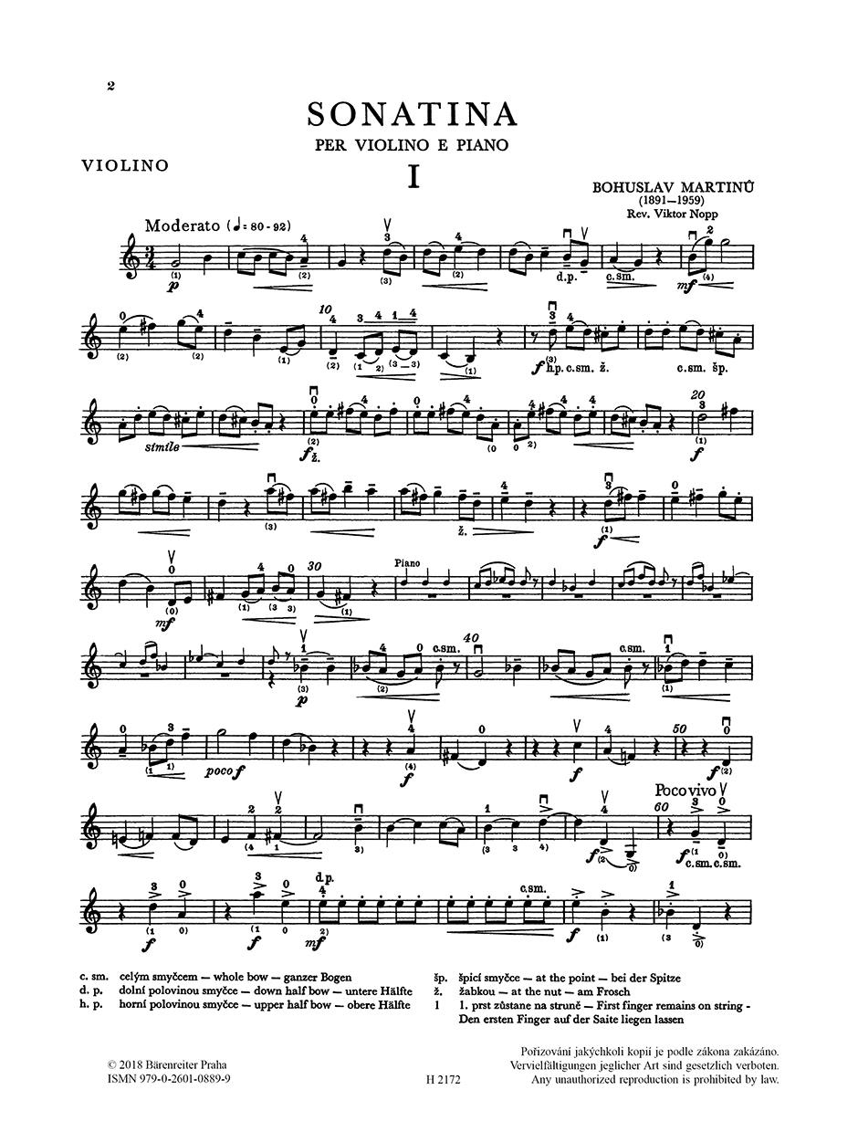 Sonatina pro housle a klavír vznikla v roce 1937 v Paříži. Dík jejímu instruktivnímu charakteru je oblíbenou součástí repertoáru adeptů houslové hry. Revizi houslového partu provedl Viktor Nopp.