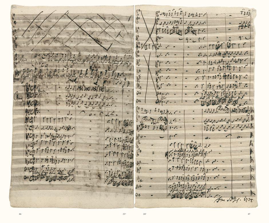 I na dalších místech vykazuje autograf stopy vlastního přebírání. Jiné opravy umožňují čtenáři nahlédnout skladateli přes rameno, jak postupně přetvářel například árii do stávající podoby a jak i u malých recitativů zápasil o jejich konečný tvar. Naproti tomu jiné stránky jsou napsány bezchybným a čistým rukopisem.